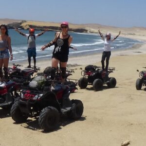 Esta es una gran aventura, llena de adrenalina y diversión. Usted disfrutará de nuestras cuatrimotos a lo largo de la Reserva Nacional de Paracas, con guías experimentados y el equipo completo. En nuestro recorrido Visitaremos el Istmo de la península y realizaremos el circuito de Playas (Playa Roja y Yumaque)