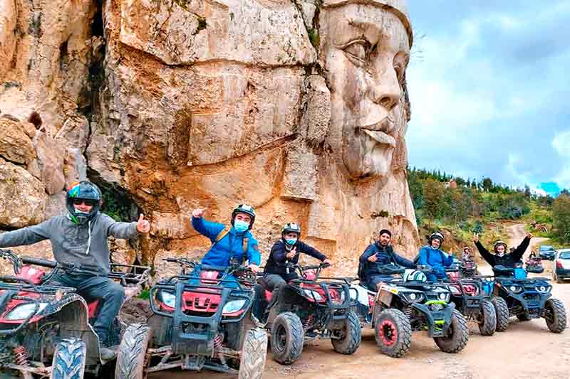 La ruta en cuatrimotos tiene la duración de 45 minutos y de 30 minutos de visita la MORADA DE LOS DIOSES, para poder apreciar las diversas esculturas hechas a mano, apreciando el paisaje natural y poder tomarse fotos.