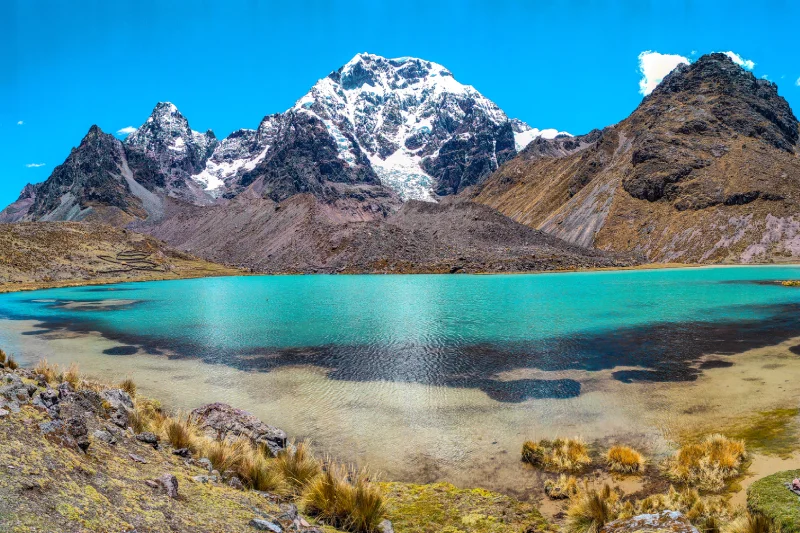 La Caminata al Tour Ausangate empieza en forma ascendente hasta llegar al primer paso del abra de Arapa (4 800 m). Desde aquí empezaremos a bajar por tres horas pasando por las lagunas de Yanacocha y Puma cocha lugar donde almorzaremos.