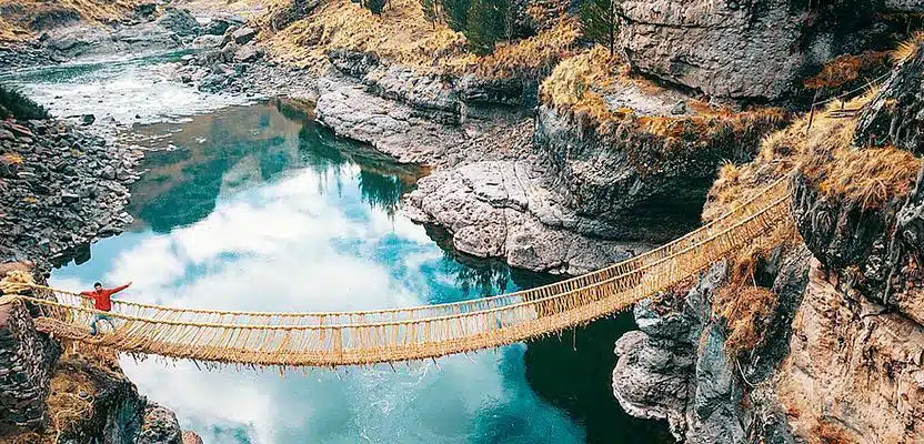 Este tour de 1 día al Puente Inca de Qeswachaka le llevará a conocer uno de los lugares poco conocido en la ruta del valle sur del Cusco, se encuentra encima del río Apurímac al cual tiene una distancia de 15 metros de altura. Perteneció a la red vial del Qhapaq Ñan o camino inca, es uno de los puentes incas que aún mantiene intacto su autenticidad ya que está elaborado de paja de puna o ichu. Alrededor de 1,000 pobladores de las comunidades cercanas se encargan de reconstruirlo anualmente en el mes de junio